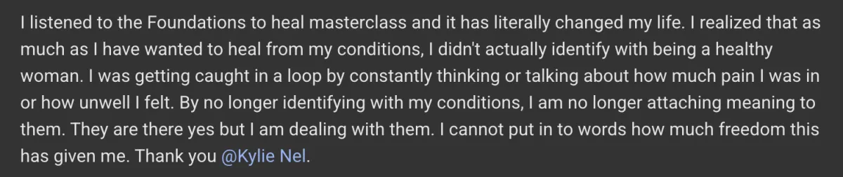 “Working with Kylie has been beyond magical. In just six months, I’ve stepped into a completely new version of myself—physically, mentally, and spiritually. I discovered my power, my magnetism, and my confidence as a healer and businesswoman, and I now fully own the truth that I’m here to do big things. I launched my product-based business, sold out of my original candles (often within a week!), and have seen my sales grow month after month.
